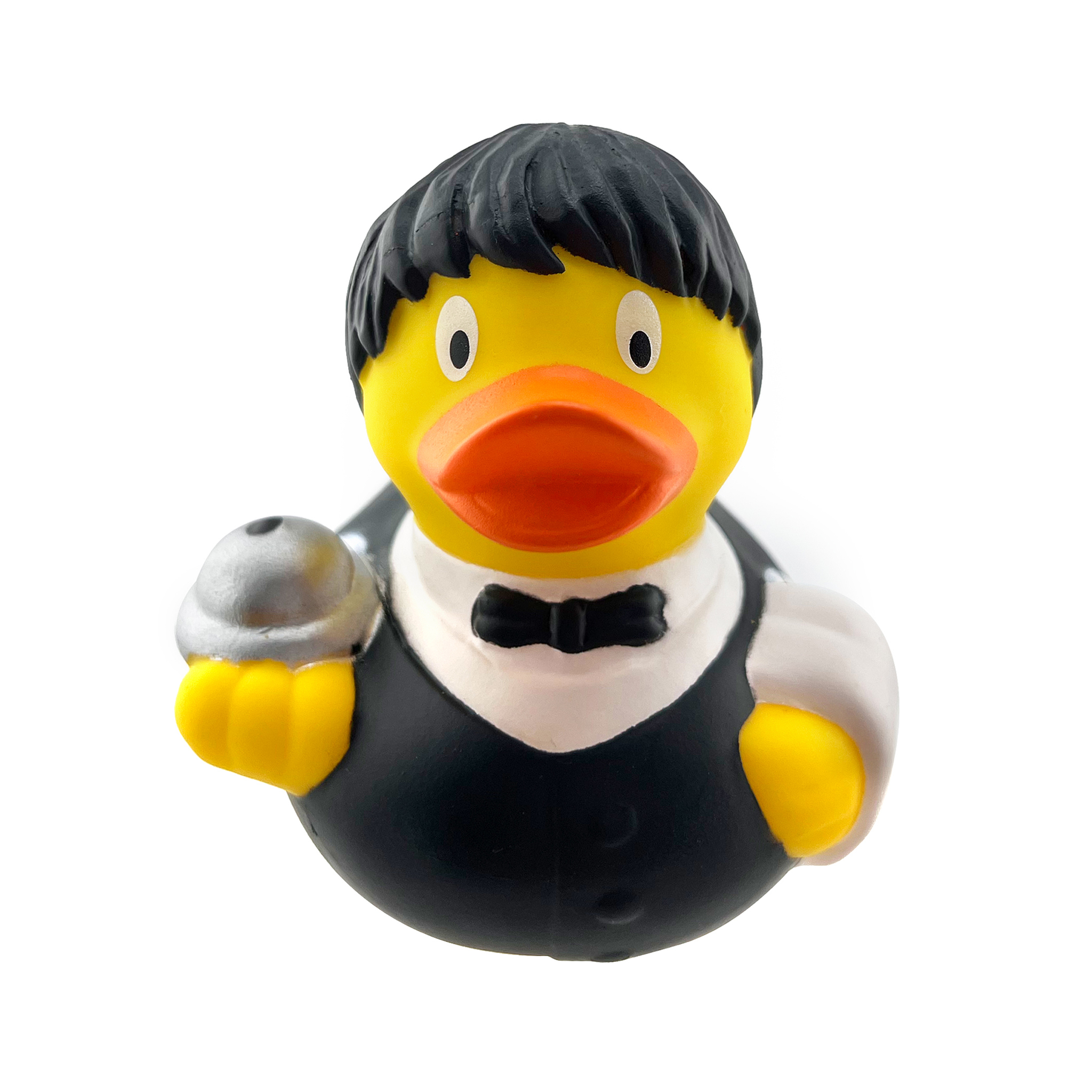 Резиновая уточка Официант. Эта уточка из коллекции персонажей. Резиновая желтая уточка - всемирно известная классическая игрушка для ванной. В дополнении к стандартной игрушке для купания предлагаем более 100 дизайнерских уток персонажей. Рекомендованы для детей от 3-х лет, изготовлены из безопасных, нетоксичных материалов и соответствуют сертификату ТР ТС. Предназначены резиновые уточки для купания, для игр в воде, на улице или дома; как игрушки в ванную, или аксессуары интерьера и сувениры. При нажатии издают негромкий пищащий звук. В первую очередь наши дизайнерские уточки - это яркий сувенир интересной формы. Часть уточек за счет более простой формы способна плавать, сохраняя вертикальное положение, как обычная уточка. Утки с оригинальным дизайном привлекут не только малышей, но и взрослых. Классическая детская желтая утка преображена дизайнерами. Новые экземпляры созданы с учетом привычек и характера личности, хобби и профессии , пола и возраста. То, что они оригинальны, никто не сможет отрицать. И выбрать из более 100 персонажей подходящую под событие или человека, безусловно, можно. Утки с ярким дизайном привлекут не только малышей, но и взрослых. Таким сувениром можно украсить рабочее место, использовать как аксессуар в ванну , собрать коллекцию по интересам, использовать как корпоративный подарок. Найдутся варианты для девочек и мальчиков, для мужчины и женщины, для коллеги и подруги, на 23 февраля, 8 марта и Новый год. Новогодняя коллекция, добро и зло, романтика и путешествия - для любого случая можно подобрать подходящие мелкие презенты. Маленькая резиновая уточка прекрасно впишется в корпоративные подарки, сладости для девочки и мальчика, подарочный набор тренеру или врачу. Добавьте водные игрушки в комплект для новорожденного или в детский гостинец.