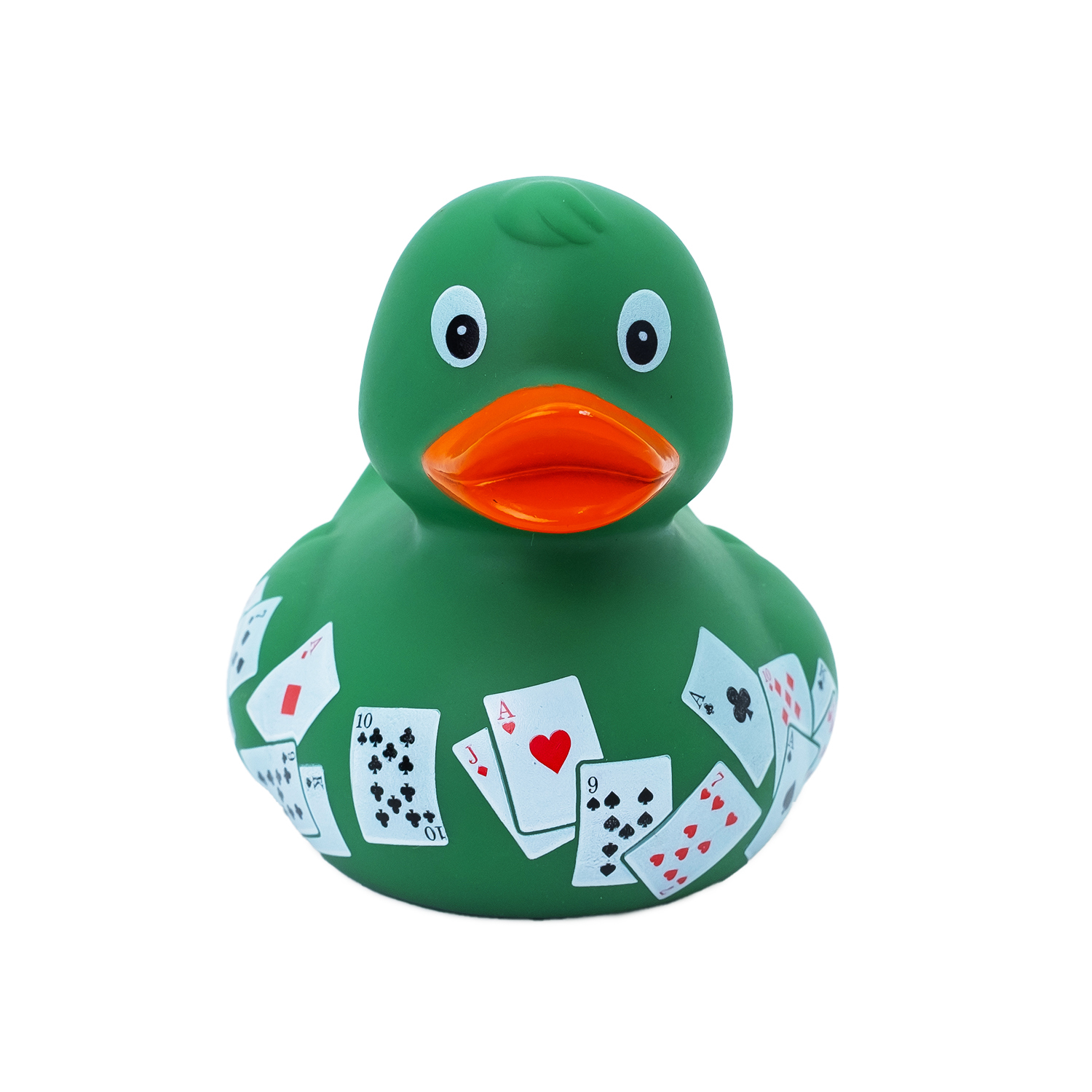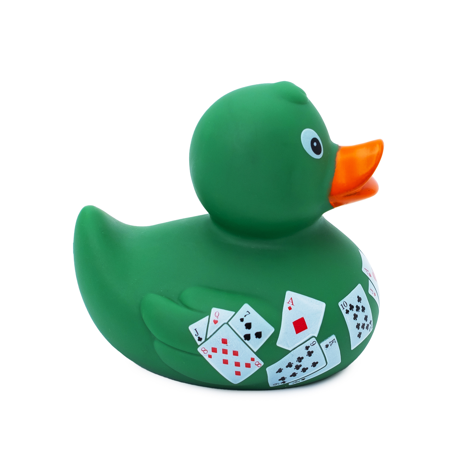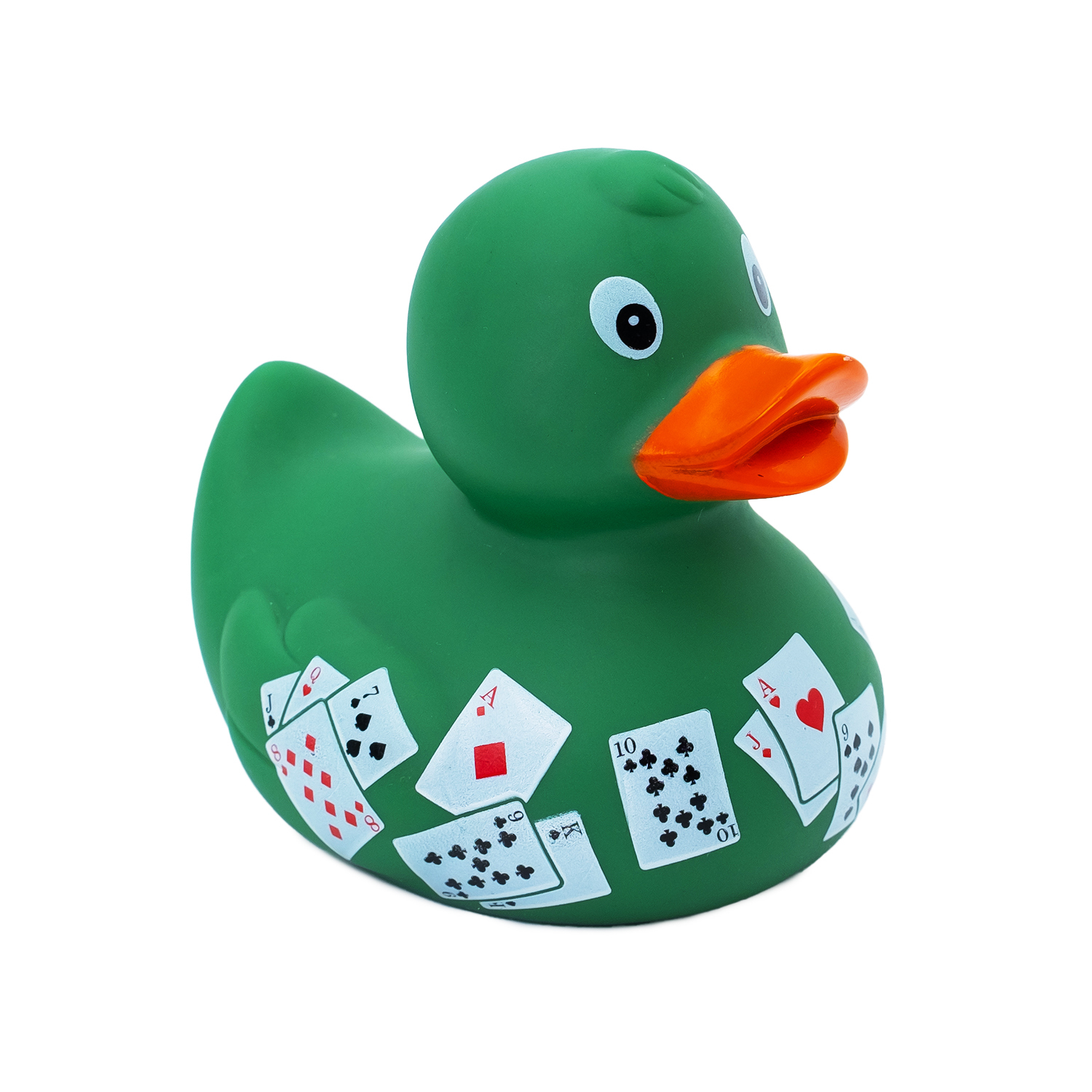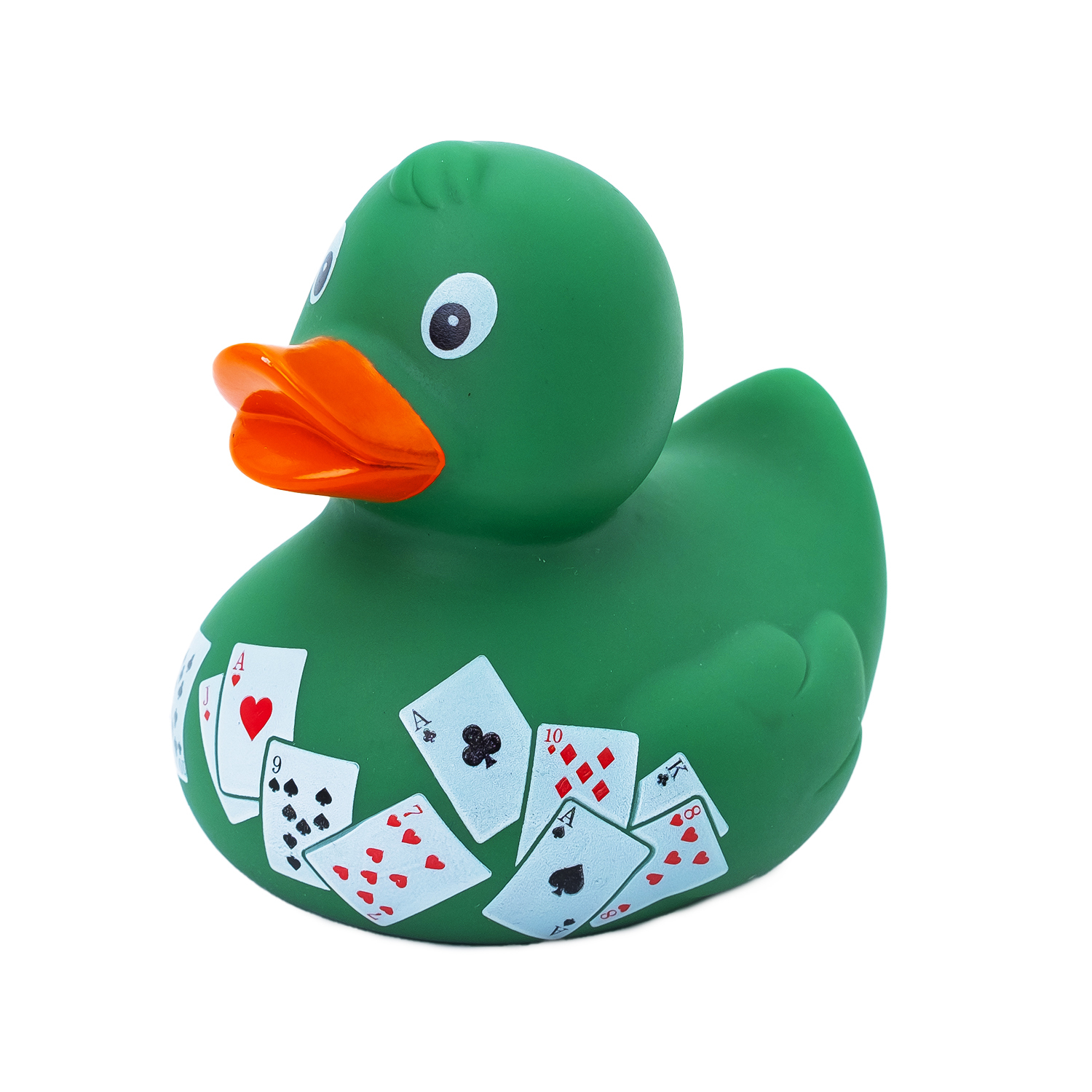 Уточка «Покер» — интересная новинка от FUNNY DUCKS. Она выполнена в необычном зеленом цвете, что ассоциируется с сукном игрального стола. Также уточка украшена изображениями карт. Она точно понравится любителям карточных игр. Дети также придут в восторг от необычной зеленой уточки. Сочетание цветов и дизайна достаточно интересное, что является фишкой FUNNY DUCKS. Необычная идея дизайнеров воплотилась в этой новой уточке в полной мере. Уточка «Покер» стала интересной вариацией стандартной желтой игрушкой для ванной. Уточка «Покер» — отличный вариант шуточного подарка для друга или коллеги. Обрадуется ему и ребенок. Если вы ищете интересную идею подарка к празднику, обратите внимание на эту игрушку для ванной. Она станет хорошим дополнением к основному презенту, особенно если получатель подарка обладает чувством юмора. Помимо необычного внешнего вида, резиновая уточка «Покер» имеет такие преимущества: - сделана из прочной и качественной резины; - не содержит вредных для здоровья человека веществ; - окрашивается безопасными, но стойкими красками, яркость которых сохраняется в течение нескольких лет. Необычная и красивая игрушка превратит скучное и обыденное купание в увлекательное приключение. Уточка FUNNY DUCKS, в отличие от большинства подобных игрушек, не имеет свистка, издающего неприятные громкие звуки. Она может использоваться не только для игр, но и для украшения интерьеров. В ней нет мелких деталей, опасных для детей, поэтому ее можно дарить самым маленьким. Уточку «Покер» вы сможете заказать через данный раздел. Достаточно добавить ее в корзину и оформить доставку. Также принимаются заявки на коллективные наборы к праздникам.