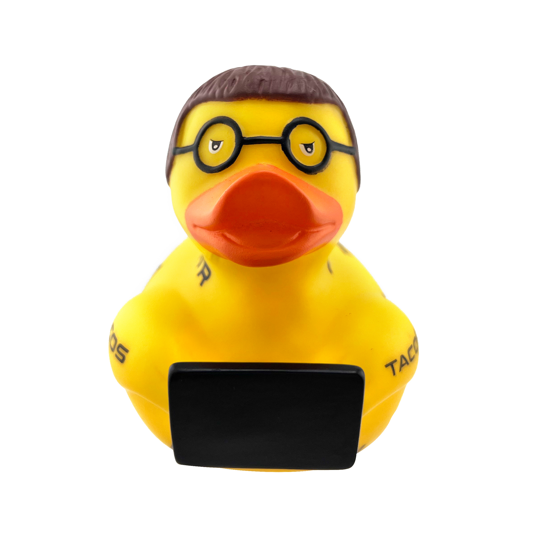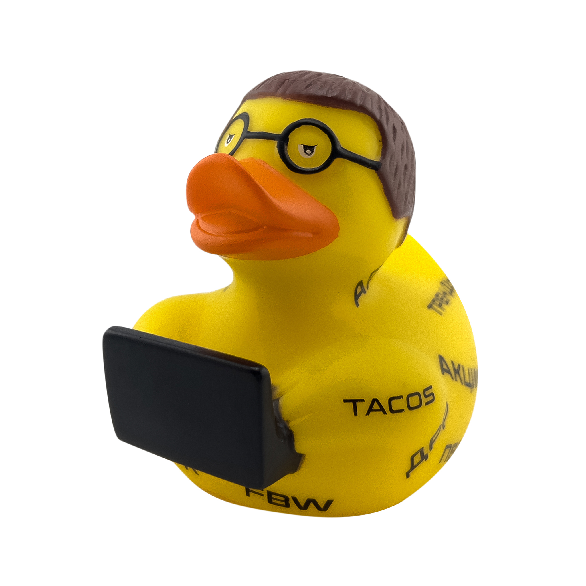 Резиновая уточка Селлер. Эта уточка из коллекции персонажей. Резиновая желтая уточка - всемирно известная классическая игрушка для ванной. В дополнении к стандартной игрушке для купания предлагаем более 100 дизайнерских уток персонажей. Рекомендованы для детей от 3-х лет, изготовлены из безопасных, нетоксичных материалов и соответствуют сертификату ТР ТС. Предназначены резиновые уточки для купания, для игр в воде, на улице или дома; как игрушки в ванную, или аксессуары интерьера и сувениры. При нажатии издают негромкий пищащий звук. В первую очередь наши дизайнерские уточки - это яркий сувенир интересной формы. Часть уточек за счет более простой формы способна плавать, сохраняя вертикальное положение, как обычная уточка. Утки с оригинальным дизайном привлекут не только малышей, но и взрослых. Классическая детская желтая утка преображена дизайнерами. Новые экземпляры созданы с учетом привычек и характера личности, хобби и профессии , пола и возраста. То, что они оригинальны, никто не сможет отрицать. И выбрать из более 100 персонажей подходящую под событие или человека, безусловно, можно. Утки с ярким дизайном привлекут не только малышей, но и взрослых. Таким сувениром можно украсить рабочее место, использовать как аксессуар в ванну , собрать коллекцию по интересам, использовать как корпоративный подарок. Найдутся варианты для девочек и мальчиков, для мужчины и женщины, для коллеги и подруги, на 23 февраля, 8 марта и Новый год. Новогодняя коллекция, добро и зло, романтика и путешествия - для любого случая можно подобрать подходящие мелкие презенты. Маленькая резиновая уточка прекрасно впишется в корпоративные подарки, сладости для девочки и мальчика, подарочный набор тренеру или врачу. Добавьте водные игрушки в комплект для новорожденного или в детский гостинец.